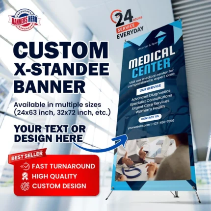 Adjustable X Stand Banner, Perfect for Trade Show, Functions, Festivals, Events, Full Color Vinyl Banner – Add Your Logo & Business Name