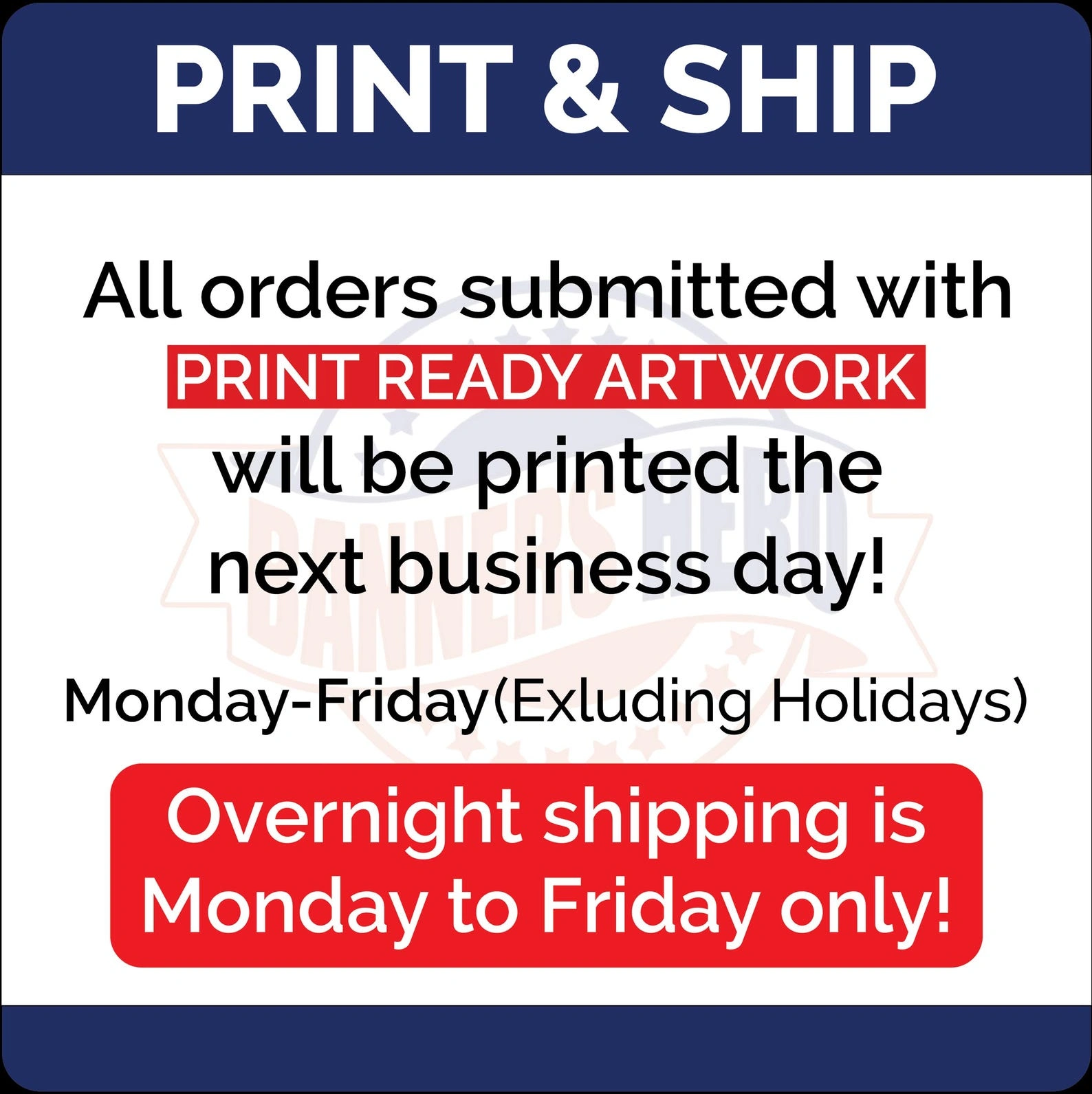 Once approved, banners go into production the next business day or the same day if approved before 2 pm.